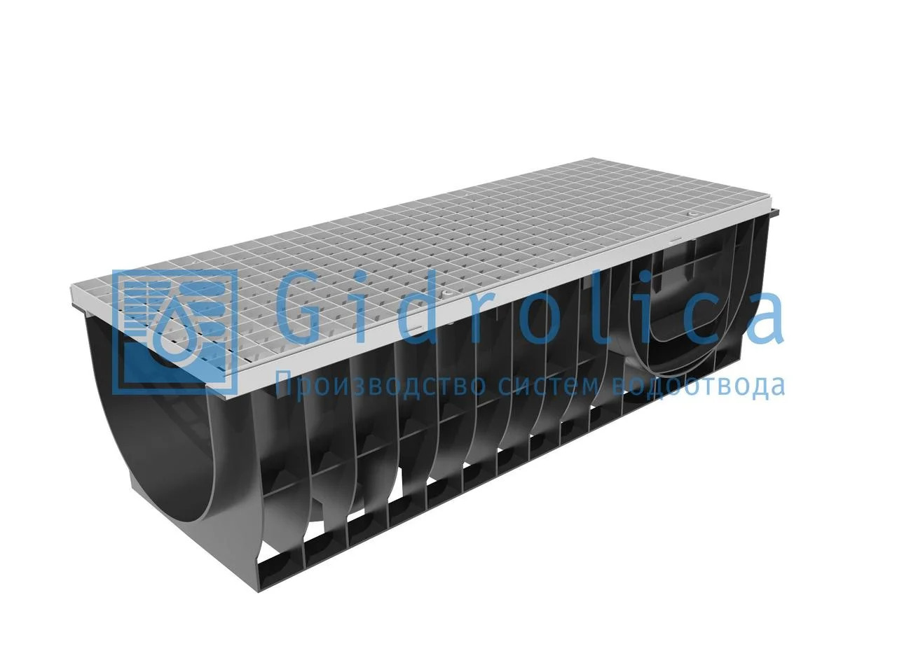 Комплект Gidrolica Light: лоток водоотводный ЛВ-30.38.28 — пластиковый c решеткой РВ -30.37.100 ячеистой стальной оцинкованной, кл. А15 в Астане