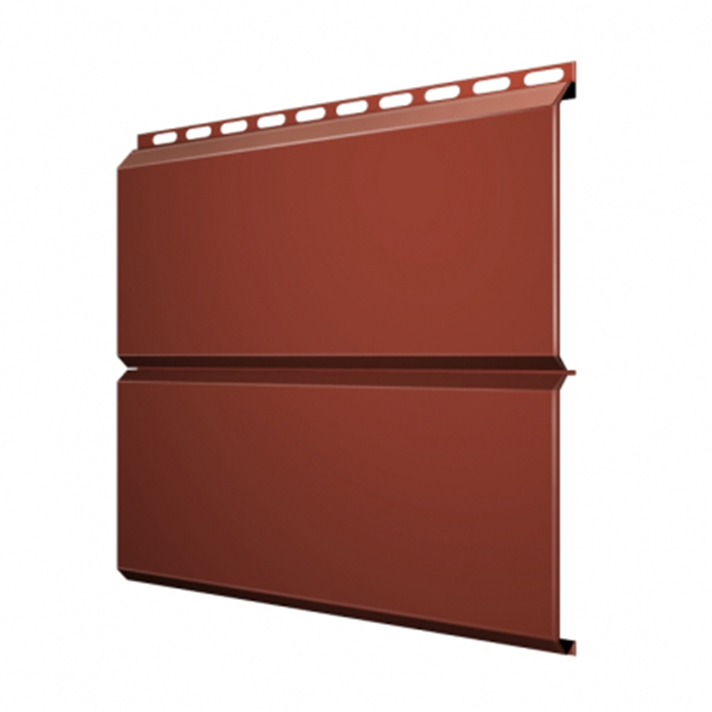 Металлический сайдинг ЕвроБрус Полиэстер RAL8004 0,4 мм — фасадный материал с глянцевым полимерным покрытием толщиной 20–25 мкм. Данный вариант занимает лидирующие позиции среди бюджетных и надёжных фасадных решений. Материал обладает высокими эксплуатационными характеристиками и широкой цветовой палитрой.