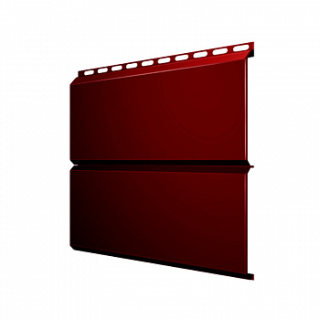 Металлосайдинг Евро-Брус МАТТ RAL3005 с матовым покрытием изготавливается из стали 0,45 мм. Имеет шероховатую текстурированную поверхность. Фасад с таким покрытием более устойчив к повреждениям и царапинам. Одной из ключевых особенностей сайдинга Евро-брус является геометрия панелей, которая обеспечивает надёжную защиту от проникновения влаги в структуру фасада.