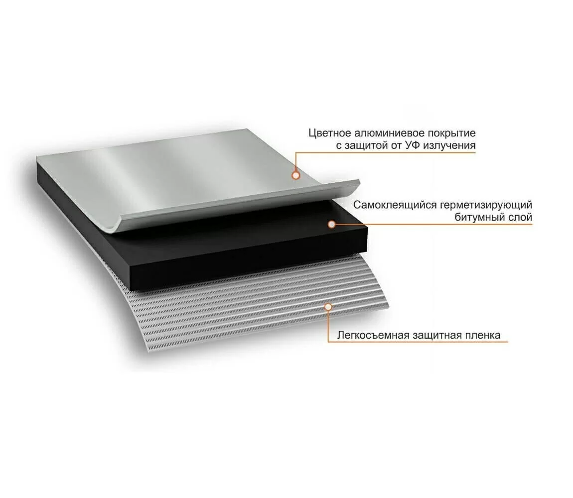 Средний слой представляет собой самоклеящийся битумный герметик.