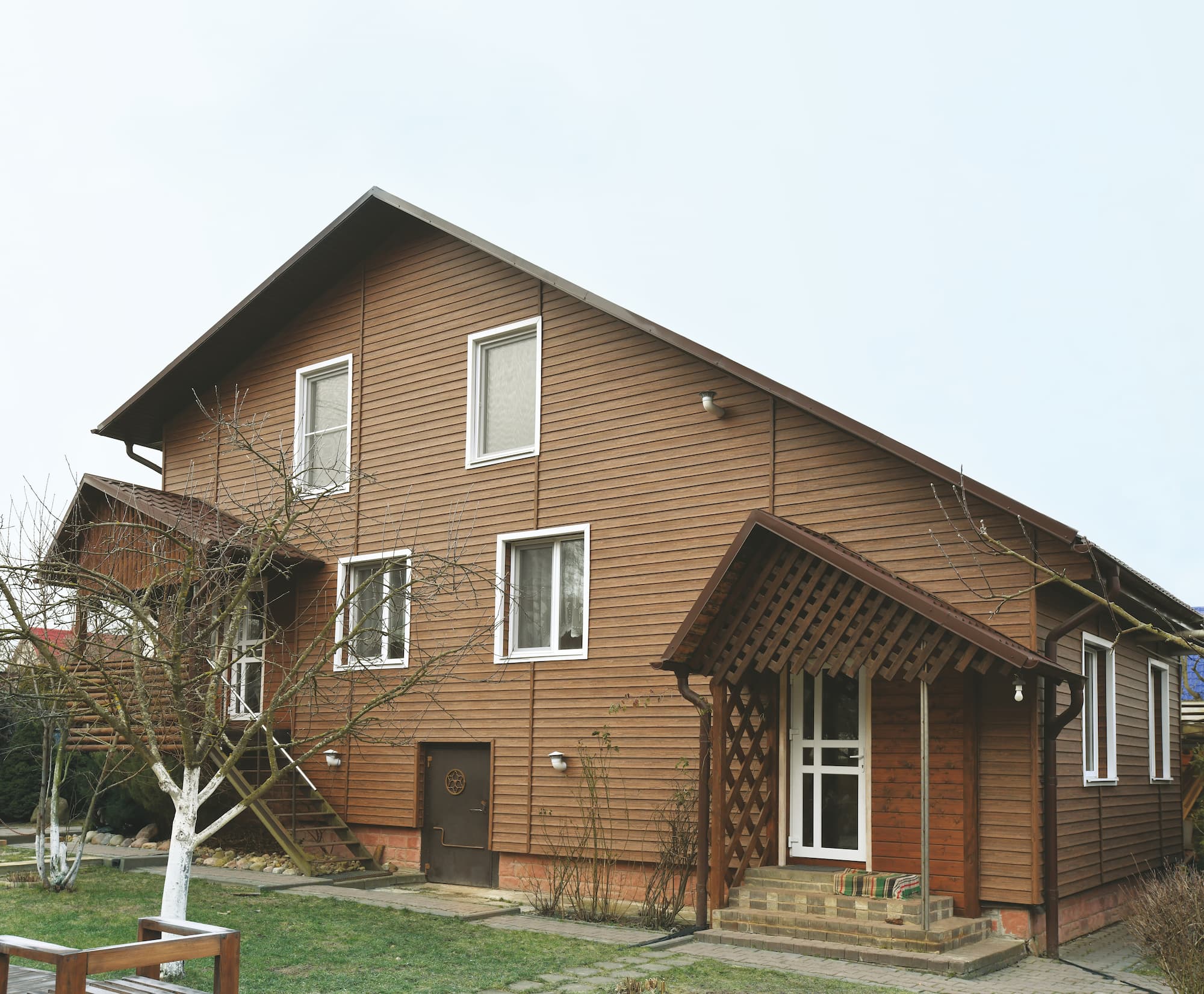 Текстура и цветовая палитра панелей имитируют натуральную древесину ели. Это делает сайдинг эстетичным и универсальным для разных архитектурных стилей.
