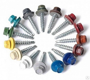 Саморез кровельный «DAXMER» окрашенный прочно и надежно фиксирует кровельный профиль к металлической или деревянной обрешетке. Изделие из стали с цинковым покрытием эффективно защищает от коррозии. Шестигранная головка и EPDM-уплотнитель покрыты порошковой полиэфирной краской. Широкая цветовая гамма позволяет легко подобрать саморезы в тон кровли.