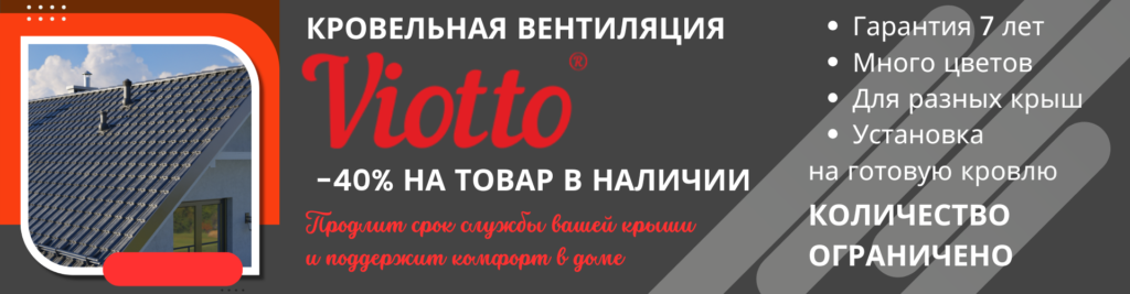 40% на кровельную вентиляцию Viotto — популярную и проверенную систему вентиляции от европейского бренда.