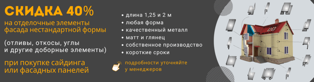 Скидка действует при заказе фасадных панелей или сайдинга из металла или ПВХ.